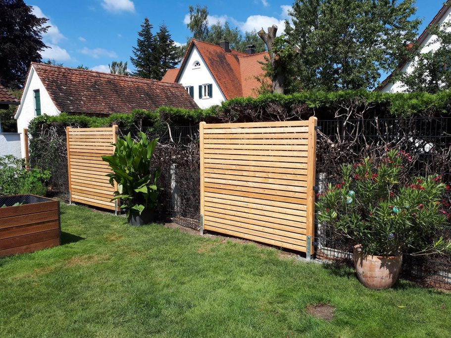 Sichtschutzwände aus Rhombusleisten.