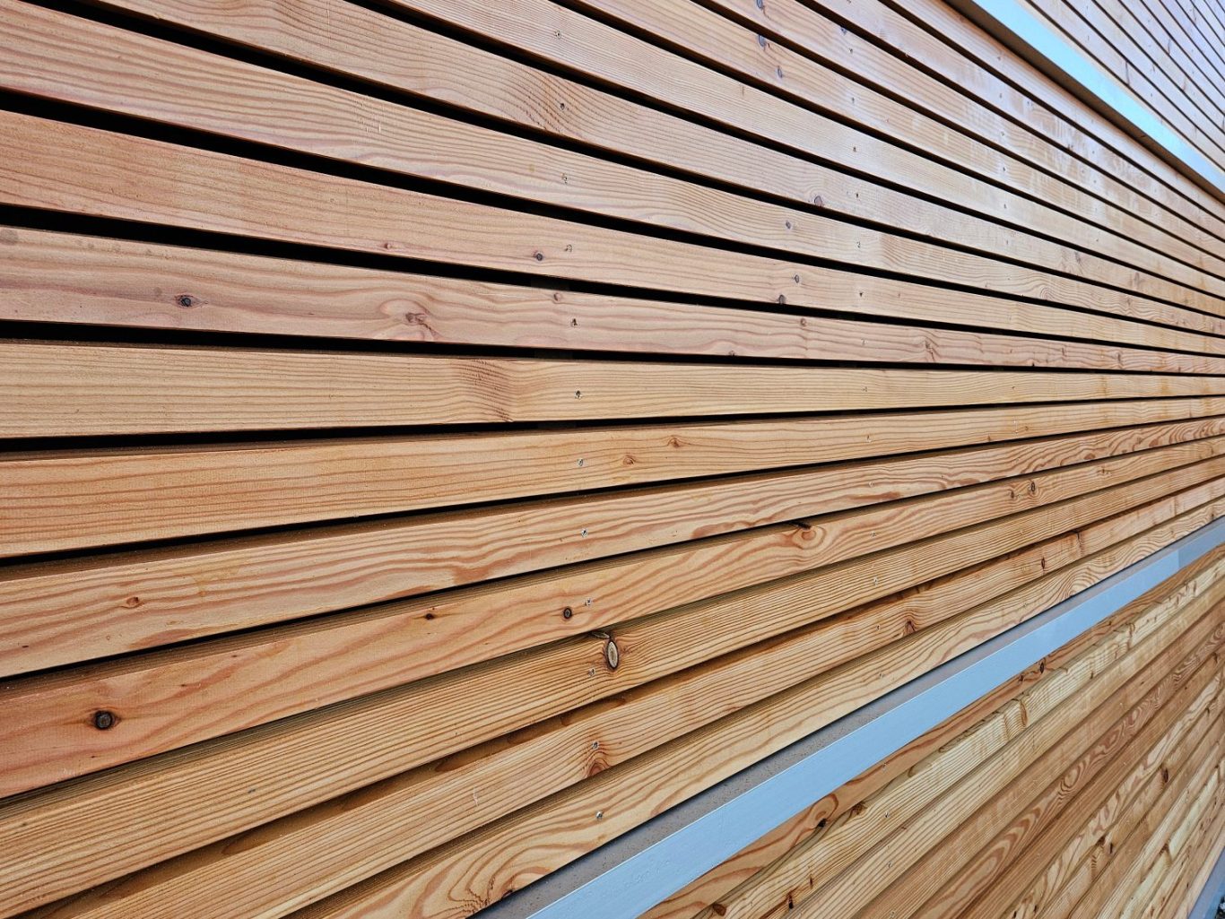 Holzfassade aus geölten Lärchenleisten.