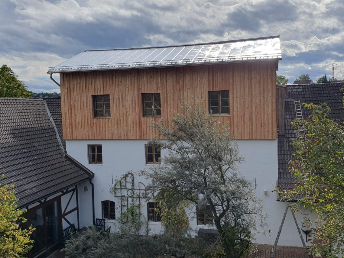 Energetische Sanierung eines Blechdaches inkl. neuer Holzfassade, in Obermühlhausen.